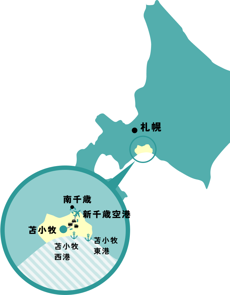 苫小牧港からは、東北(八戸、仙台、秋田)、関東(大洗)、